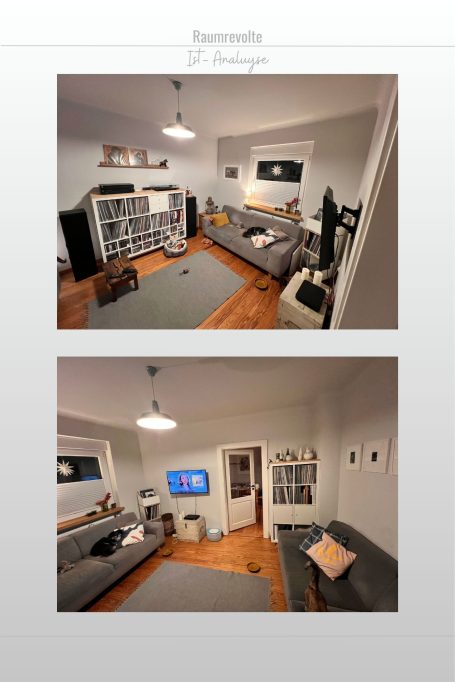 Durch die gezielte Umplanung wirkt das Wohnzimmer heute deutlich offener, strukturierter und einladender. Die neue Möblierung nutzt den vorhandenen Raum optimal und schafft einen komfortablen Mittelpunkt für Entspannung und gemeinsames Leben.