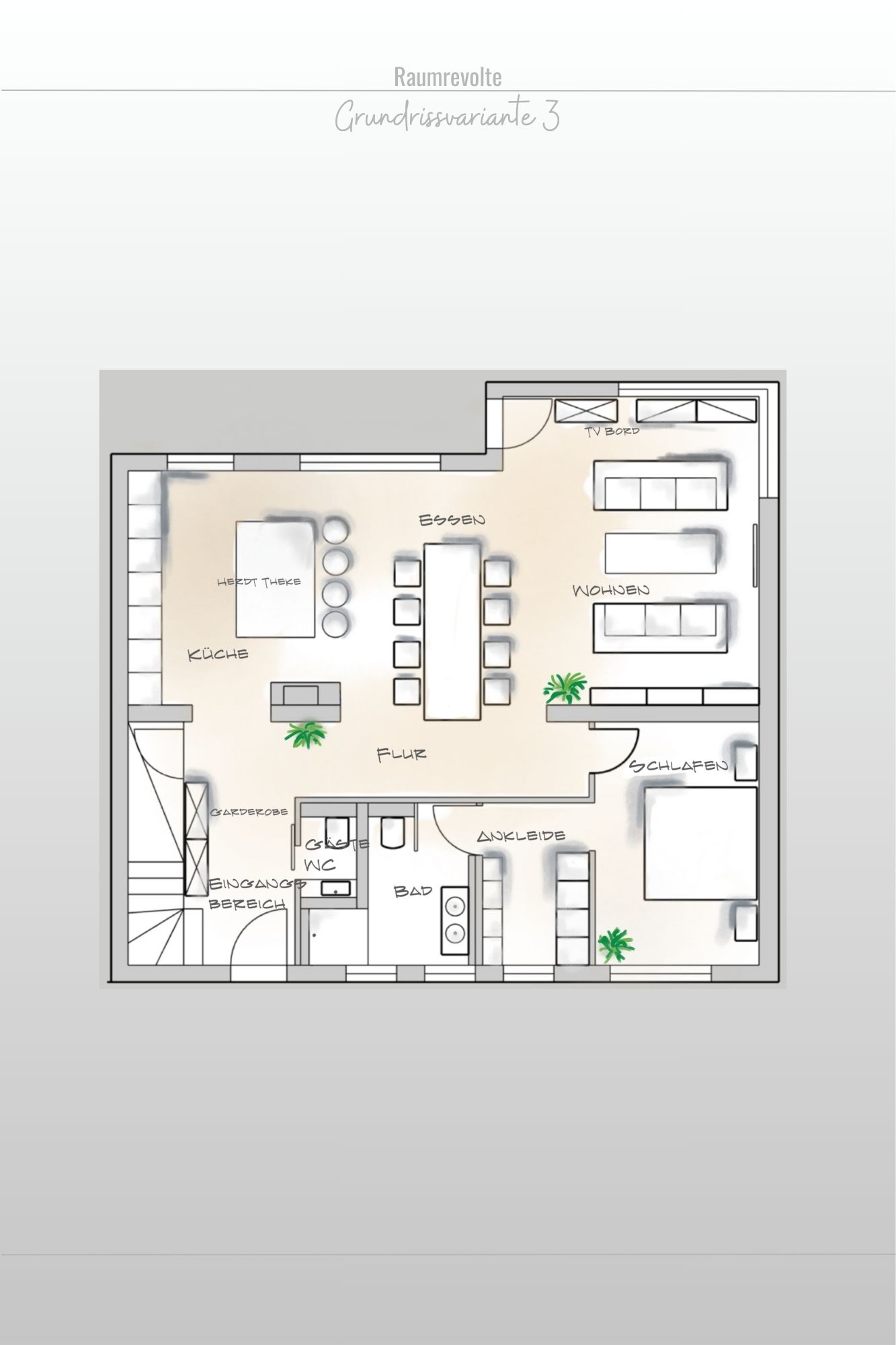 - Zonierung von Wohnen, Essen und Küche im offenen Grundriss