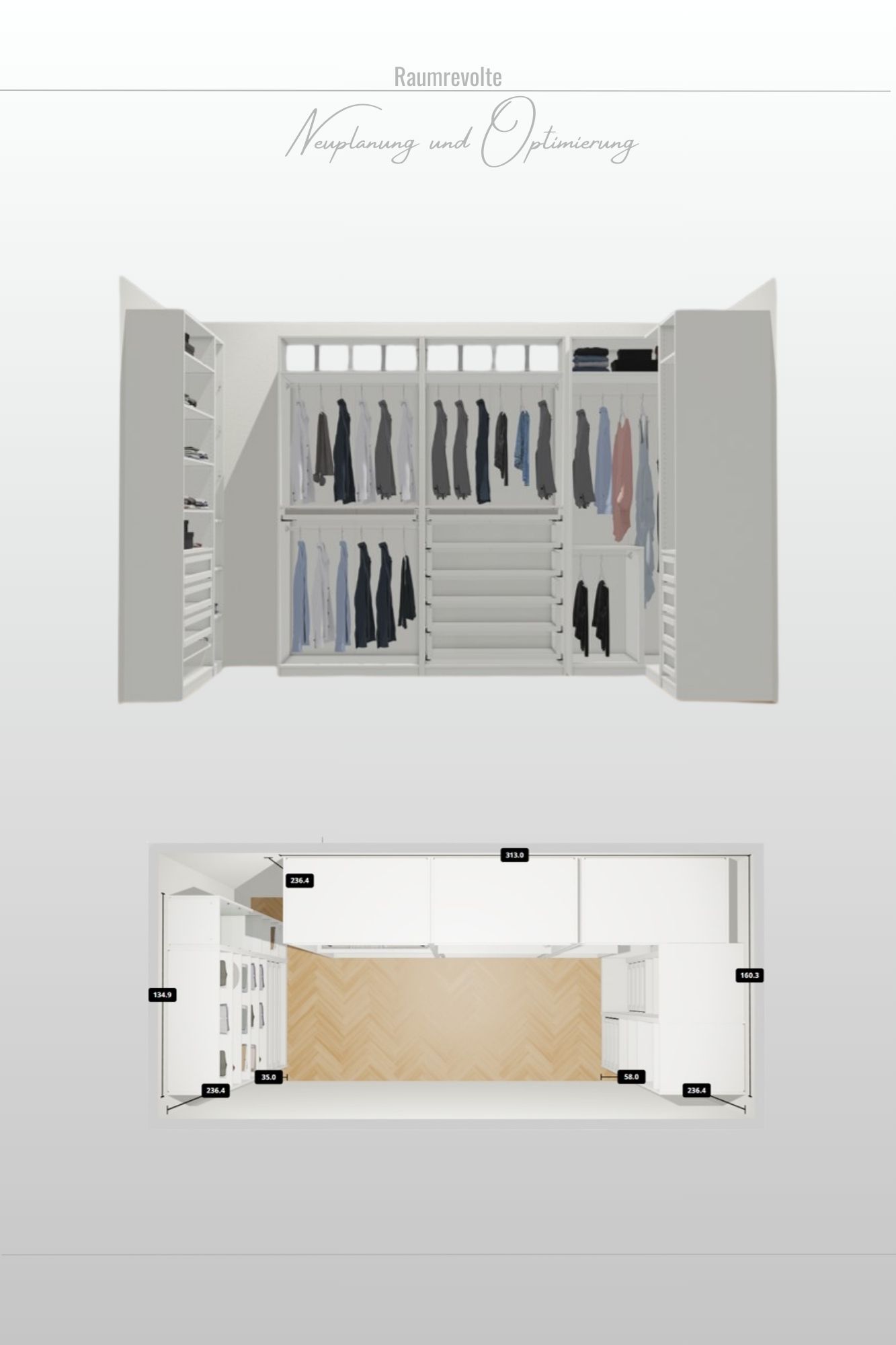 Für dieses Projekt wurde eine bestehende Raumsituation zu einer funktionalen und übersichtlichen Ankleide umgeplant. Ziel war es, den vorhandenen Platz optimal zu nutzen und ausreichend Stauraum für zwei Personen zu schaffen, ohne den Raum zu überladen.
