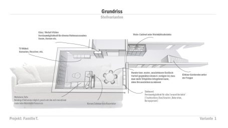 Bei diesem Projekt wurde ein bestehendes Wohnzimmer vollständig neu geplant und gestalterisch überarbeitet. Ziel war es, durch professionelle Innenarchitektur und Raumplanung mehr Großzügigkeit, eine bessere Möblierung und eine stimmige Wohnatmosphäre zu schaffen.