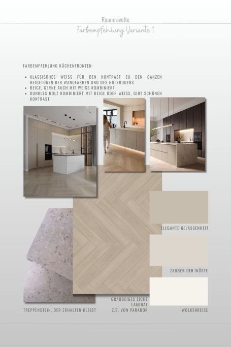 Das entwickelte Konzept bietet eine klare gestalterische Grundlage für die weitere Umsetzung im gesamten Haus. Durch die abgestimmte Kombination von Farben, Materialien und Ausstattung entsteht ein zeitloses, harmonisches Erscheinungsbild, das Sicherheit bei allen weiteren Entscheidungen gibt.